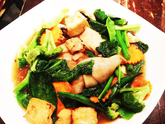 I realized I am still new to Sydney when I was trying to find my way to Hotel Park Royal from Cockle Bay Wharf. Sydney CBD and its meandering streets are quite confusing, especially when one is used to the precise grid of Melbourne CBD. I found my way there finally (thanks to Maps on my I phone) to meet a dear friend who was down for work from Melbourne. We were both famished and were actually walking towards an old favourite Din Tai Fung when we stumbled upon this fiery beauty. Home Thai Restaurant reminded me a lot of Chat Thai, another popular Sydney Thai Restaurant- the modern Asian vibe and decor was very similar. The Restaurant has a large open kitchen near the entrance, the decor is minimal and modern with exposed brick walls, some art pieces and a touch of green with plants. The restaurant was filled with customers - always a good sign and there were also a number of people waiting to be seated. After about ten minutes we were escorted to our table, we settled down and ordered away. The menu had a good selection of vegetarian dishes, which was great as both me and my friend are vegetarians.